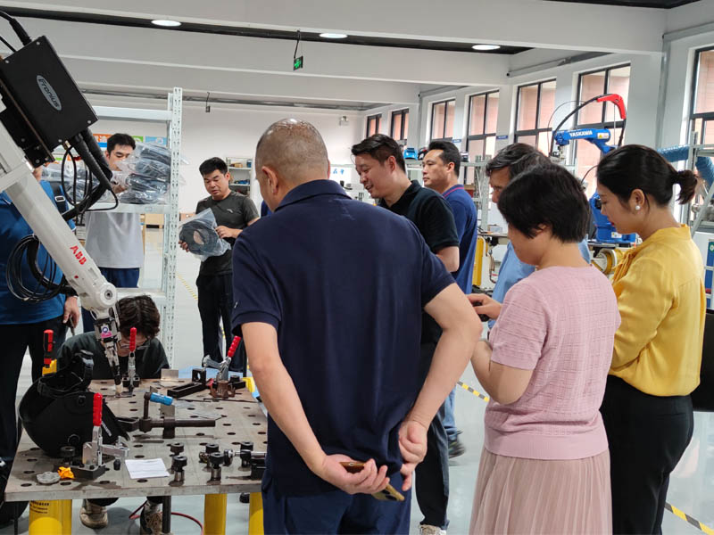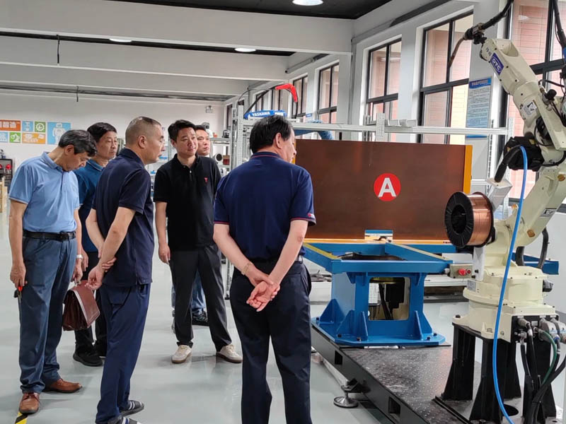 2023年6月13日上午,常州市人社局叶局、常州工业机器人产业协会刘会长、蒋秘书长、江苏华阳智能装备许董及工业机器人产业协会会员单位领导来我司参观考察,我司张总陪同参观并介绍了我们的主营业务及焊接打磨创新实验室。