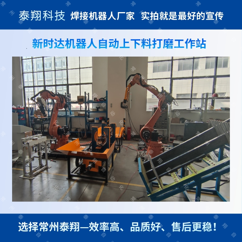 常州泰翔自动化为客户定制的机器人自动上下料,自动打磨机器人工作站,自动上下料机器人能够高效地完成物料的搬运和装卸,减少人工干预,打磨机器人能够实现高精度和高效率的打磨作业。通过自动化打磨,不仅提升了产品的一致性和质量,还大幅度减少了人工操作的时间和成本降低人力成本。该系统具备灵活的适应性,能够处理不同规格和类型的工件,确保生产线的连续运作。