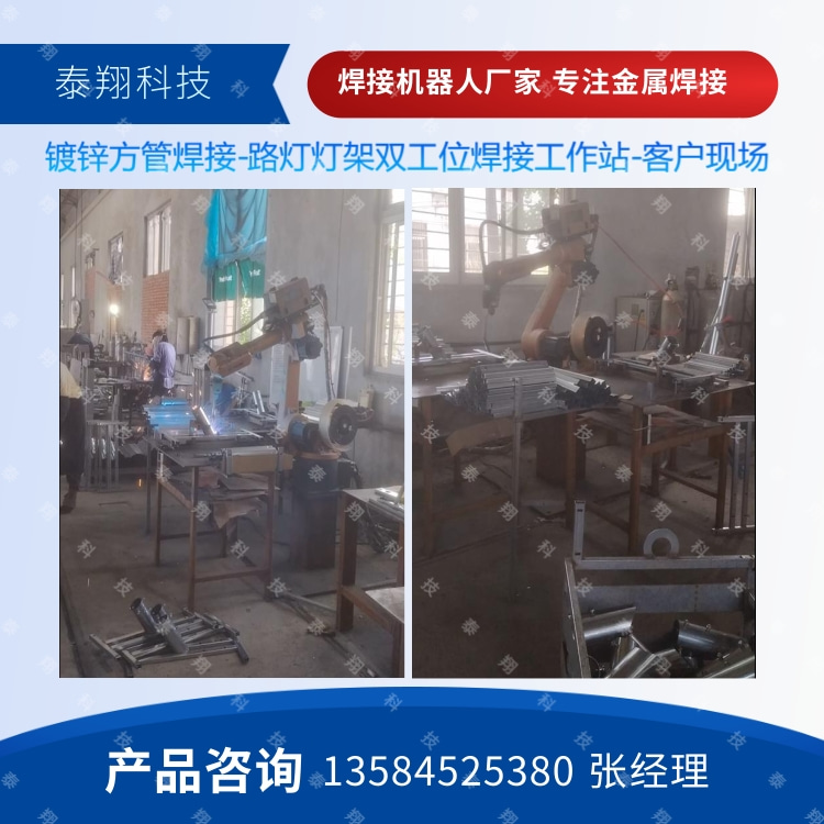 客户定制的路灯灯架镀锌方管云顶集团3118官网客户使用现场,采用国产云顶集团3118官网双工位焊接工作站,焊接一次成型,实现焊接效率翻倍。