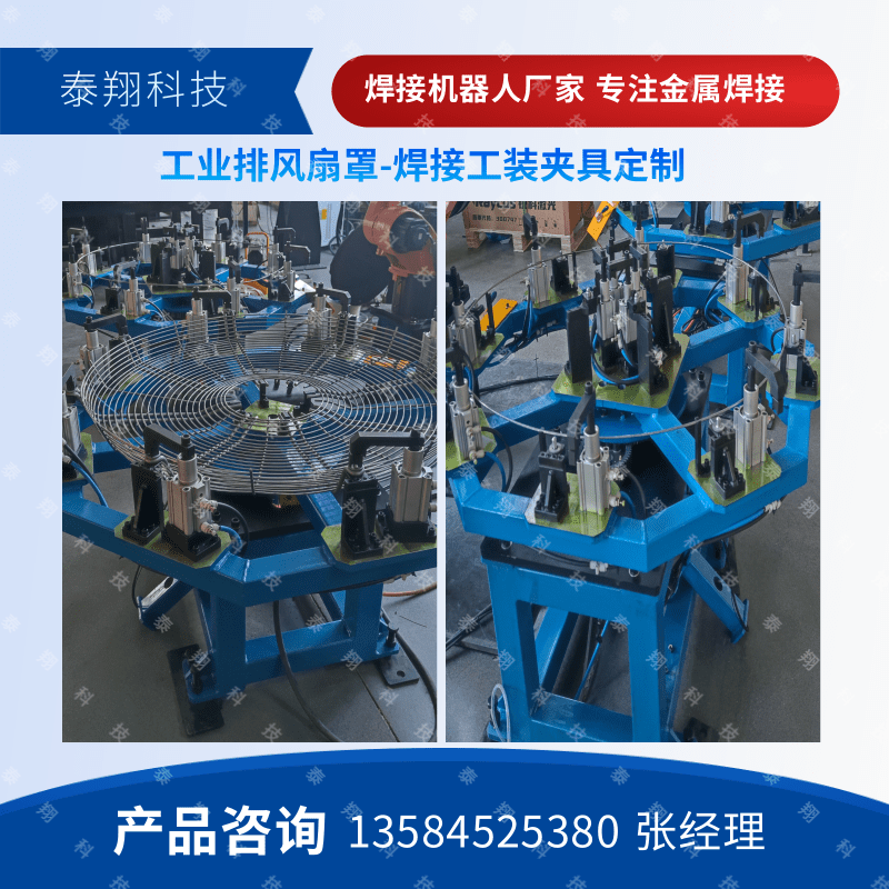 常州客户定制的工业排风扇罩气保焊点焊BETVLCTOR伟德在线,搭配泰翔设计的焊接工装夹具实现多点位焊接,焊接速度满足客户的焊接需求!欢迎咨询焊接案例0519-85516976