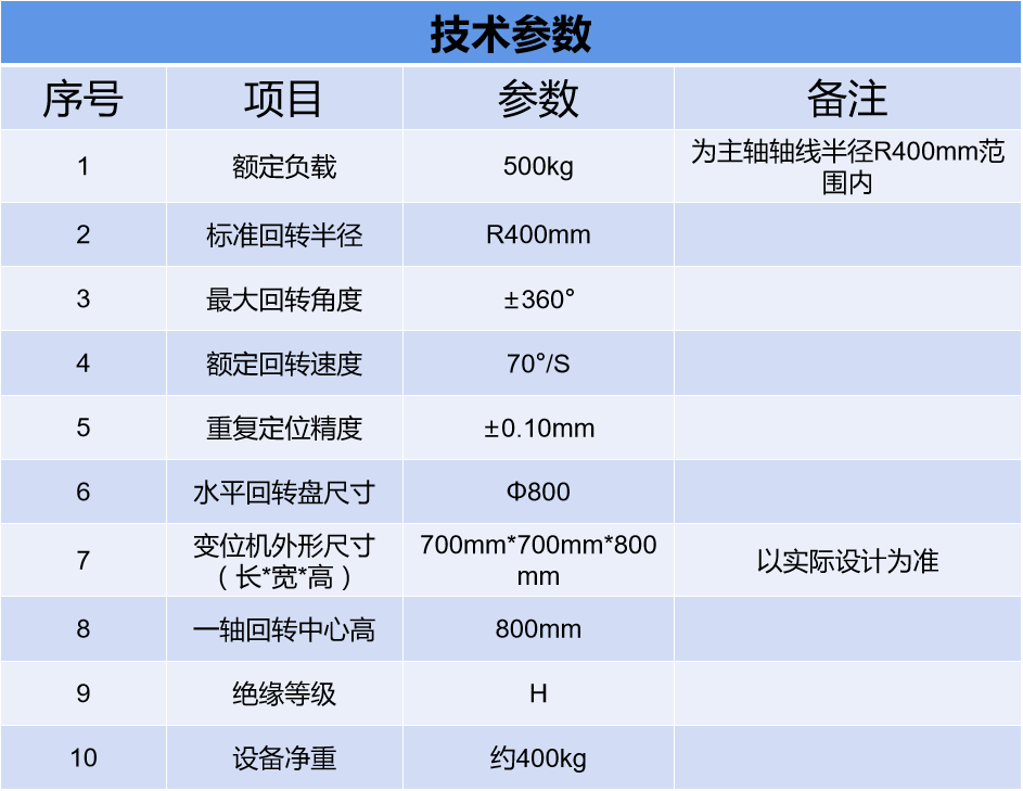 是指配合机器人机械手臂使用,改变产品摆放姿态、位置的自动化旋转/翻转装备,在机器人编程时将变位机的控制程序输入到机器人控制系统中,可以跟机器人实现协调运动,对机器人的灵活度进行补偿,提高工作效率。