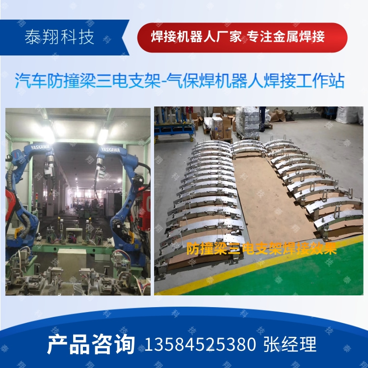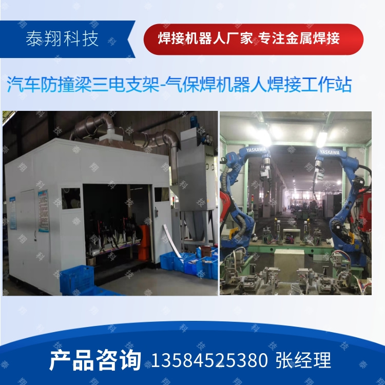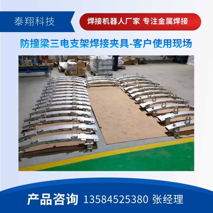 常州泰翔为客户定制的汽车防撞梁气保焊工作站客户现场: