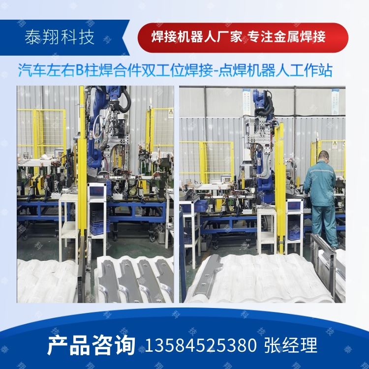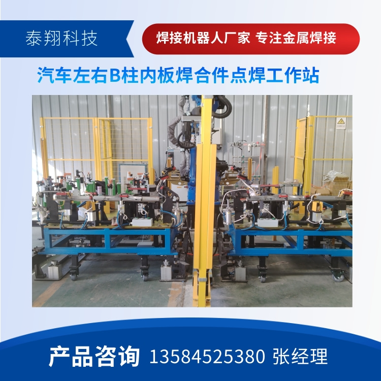 客户定制的汽车零部件点焊工作站,汽车左右B柱焊合件点焊工作站应用,欢迎咨询案例: