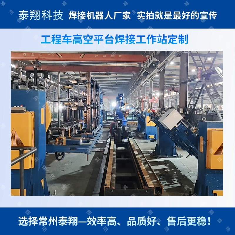 常州泰翔深耕工程机械自动化焊接领域,针对不同材质、板厚的工件均能定制专属解决方案。此次碳钢高空作业平台车框架焊接案例,再次验证了四工位工作站在柔性生产中的核心优势。如有同类焊接需求,欢迎联系我们获取定制方案!