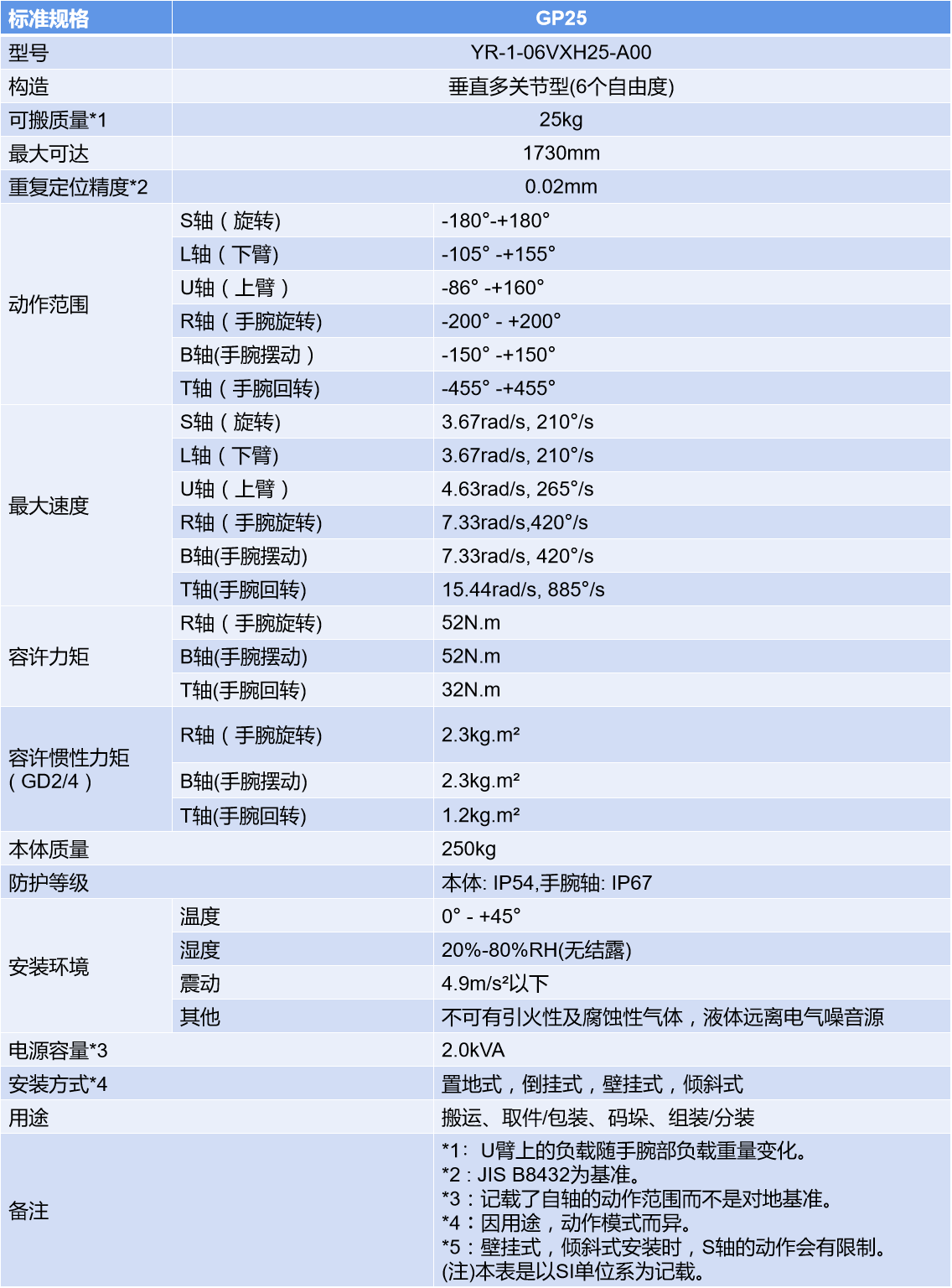 负载︰小型用途:70kg,中·大型用途:85Kg (可内置外部3轴)