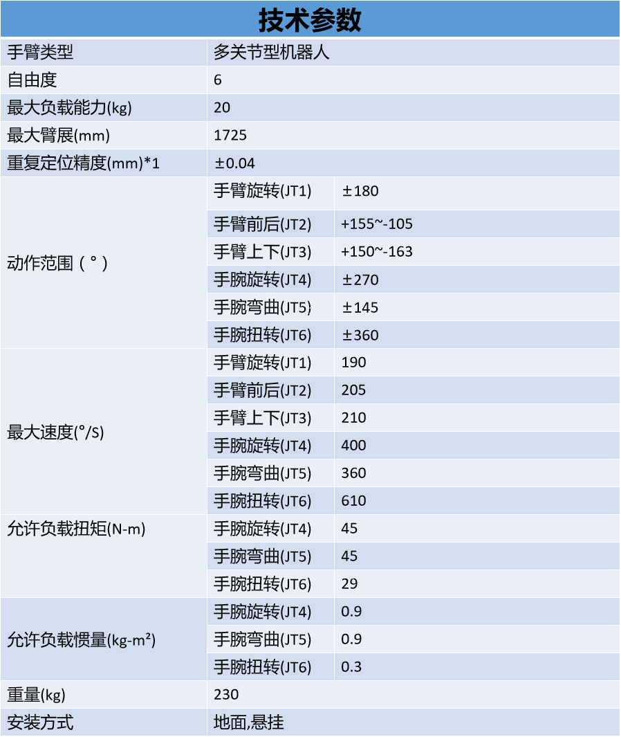 川崎激光焊机器人RA020N产品参数: