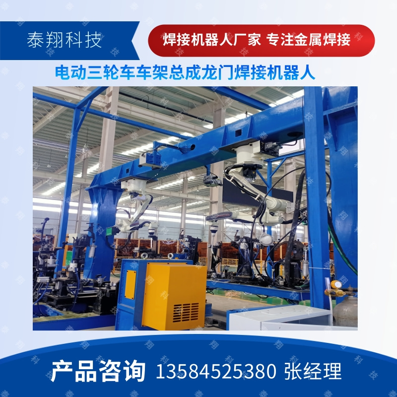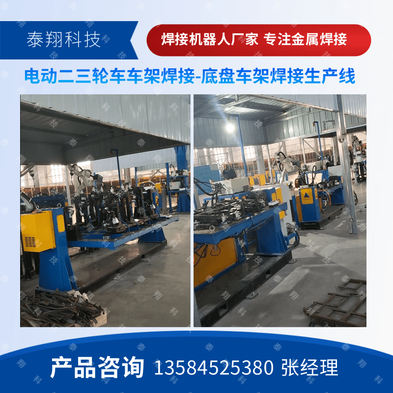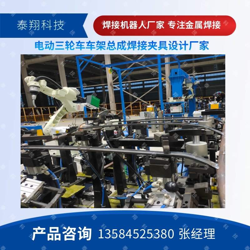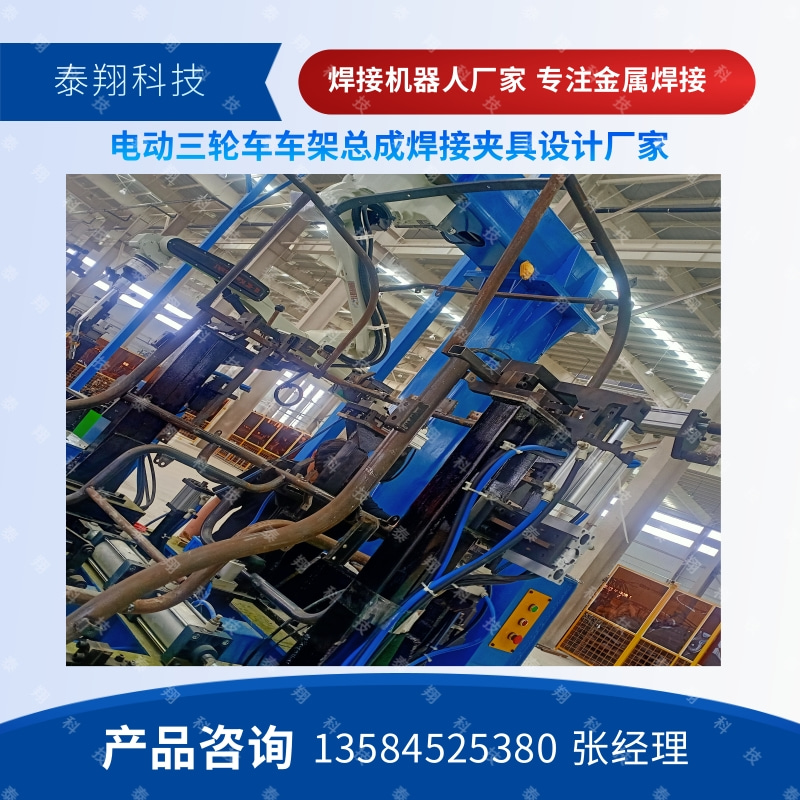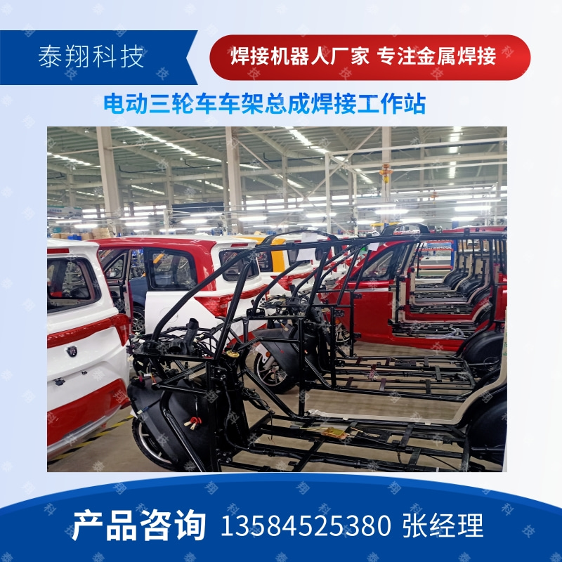 某电动公司采用泰翔科技焊接生产线用于新能源电动三轮四轮车车架的焊接生产。